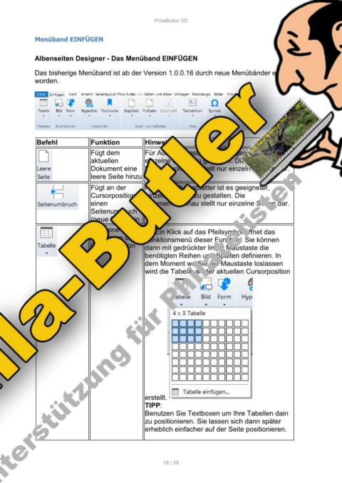 Albenseiten Designer - Das Menüband EINFÜGEN