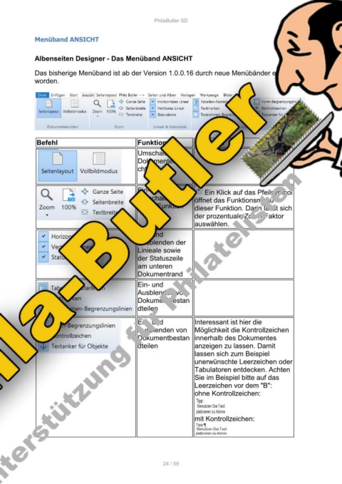 Das bisherige Menüband ist ab der Version 1.0.0.16 durch neue Menübänder ersetzt