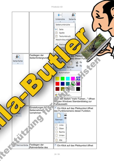 Seitenhintergrundfarbe das Funktionsmenü dieser Funktion.