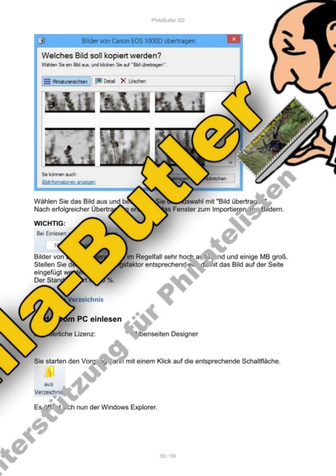 Nach erfolgreicher Übertragung erscheint das Fenster zum Importieren von Bildern.