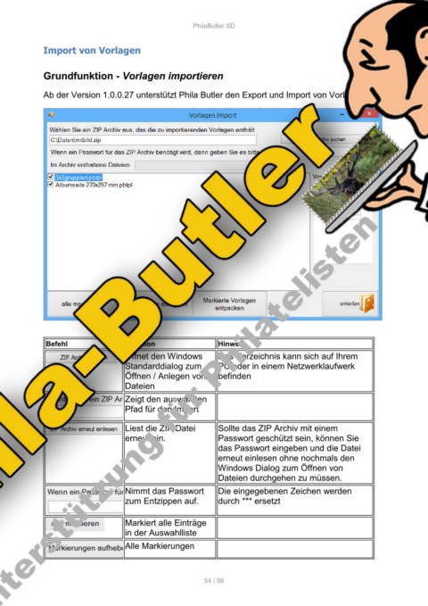 Ab der Version 1.0.0.27 unterstützt Phila Butler den Export und Import von Vorlagen.